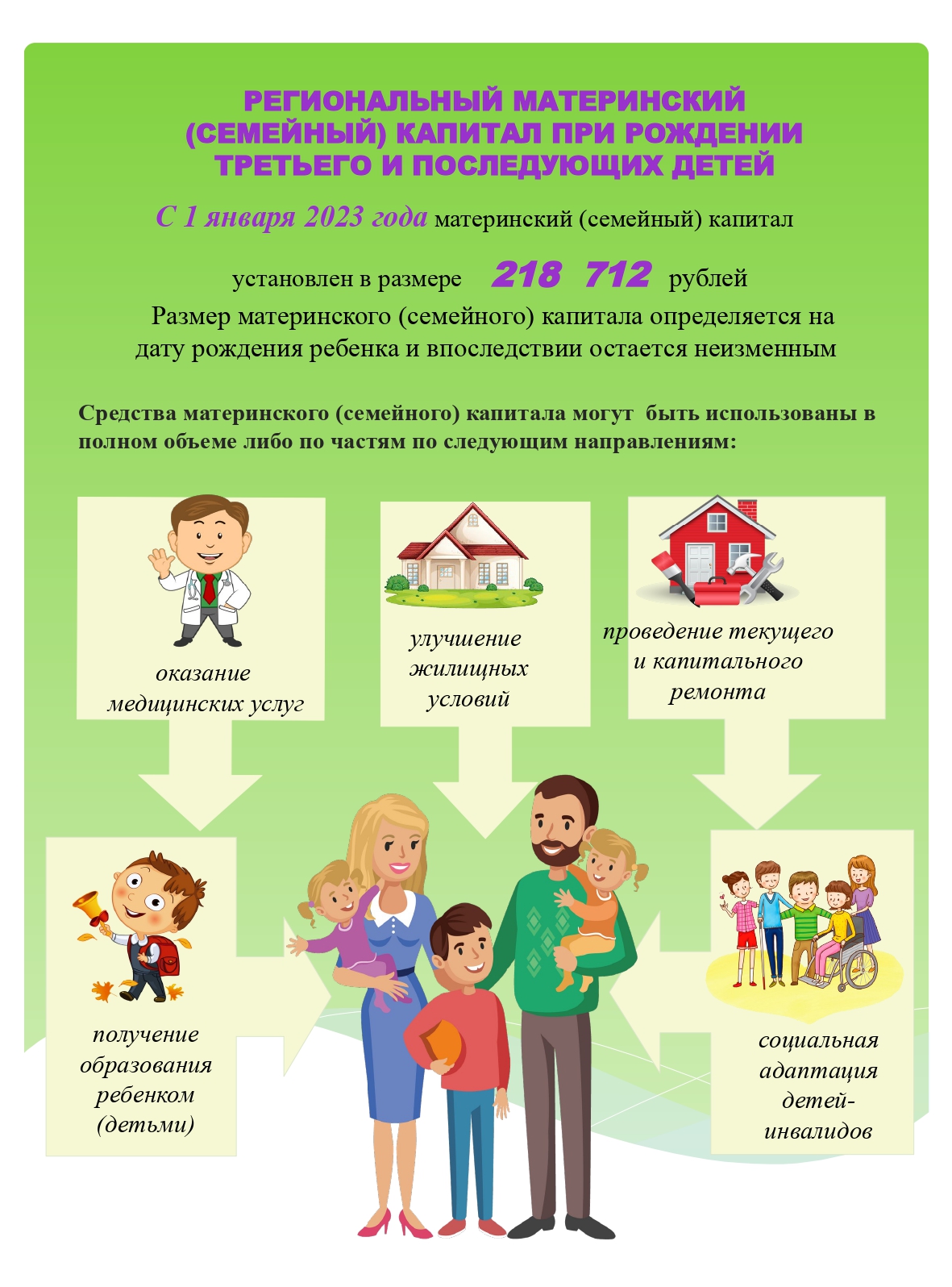 Кроме того, при рождении третьего ребенка или последующих детей в Приморском крае КГКУ «Центр социальной поддержки населения Приморского края» предоставляется региональный материнский (семейный) капитал в размере 218.712 рублей, который можно расходовать на приобретение или строительство жилого помещения или направить на погашение основного долга и уплату процентов по кредитам.