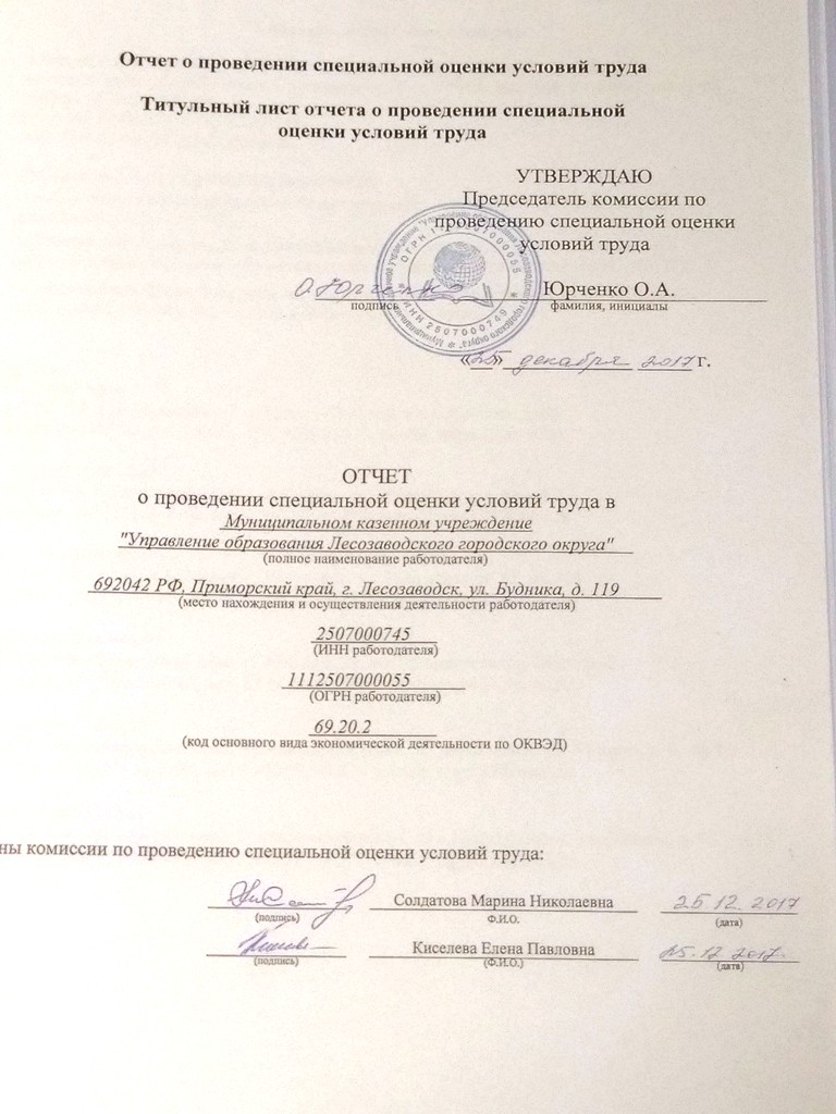 Специальная оценка охраны труда проведена ООО "Краевой центр охраны труда"